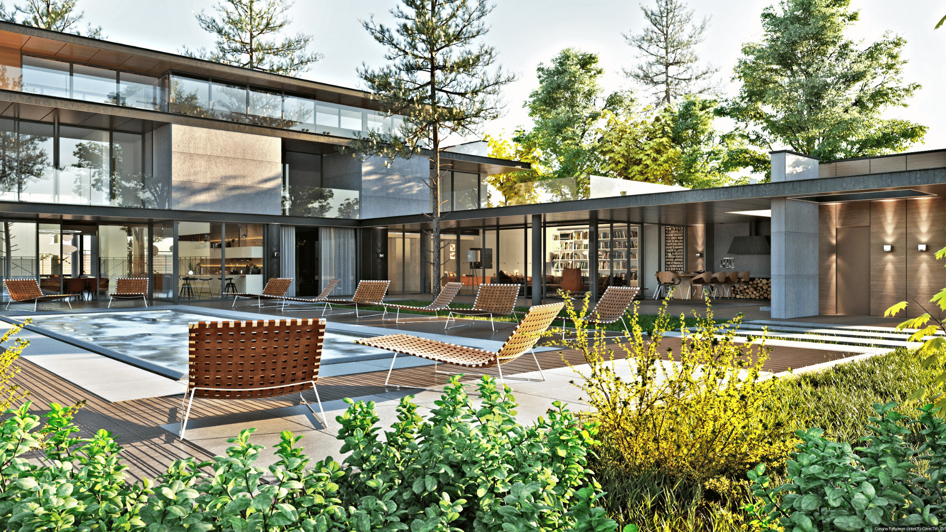 Buying plans of Scenery House means investing in a home that prioritizes comfort, practicality, and a strong connection to the natural environment. The standout feature of an expansive glass wall in the ground-floor living room provides panoramic views of the landscape and pool, enhancing the living experience.